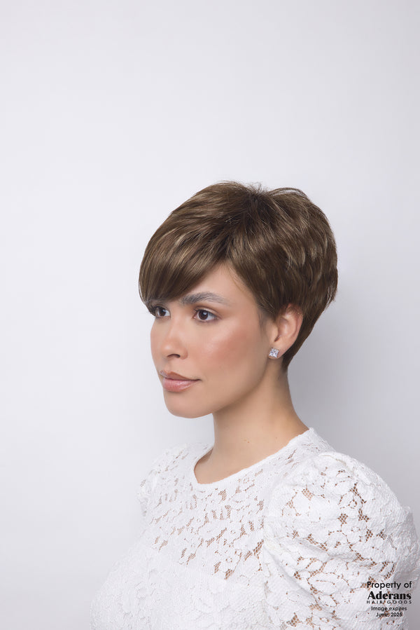 Amara from our Alexander Couture Collection is a short-length synthetic wig. This straight ready-to-wear wig is a pixie cut with a stylish fringe on the side. This style has texture and body that will give you an effortless look. Amara is machine made with adjustable tabs in the back nape area to allow a more comfortable fit. The result is a comfortable fit with a natural look that is both fashionable and easy to wear.